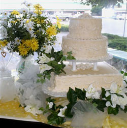 Whether you want your wedding cake to be traditional or non-traditional, you certainly want it to be both beautiful and delicious. Larson's Bakery can create the perfect cake confection for your special day. The cake designers at Larson's Bakery will work with you to design a masterpiece for your wedding day. The wedding cakes pictured below are some examples of the wedding cakes Larson's Bakery offers. At Larson's Bakery, we have dozens more pictures for you to see. Or, if you already know the cake design you want, come in and tell us about it or show us a picture. Our cake designers are very talented and will be able to create your dream wedding cake.